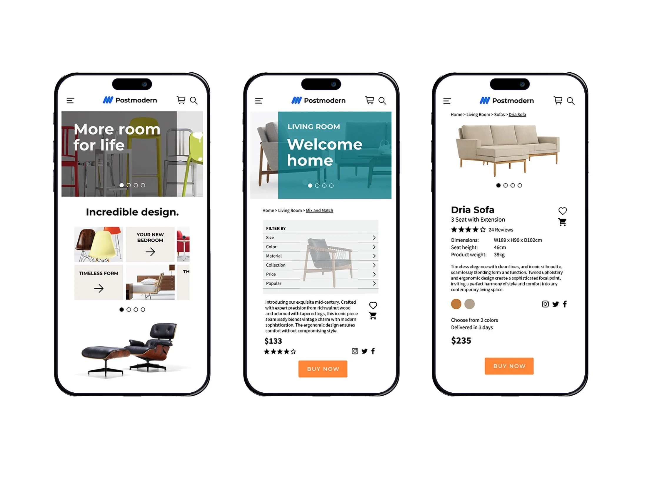 A forward-looking e-commerce brand rooted in modernist design principles, Postmodern needed a digital presence that echoed its minimalist sensibility. This spec website concept builds on that direction and translates it into a refined shopping experience centered on clarity and intention.