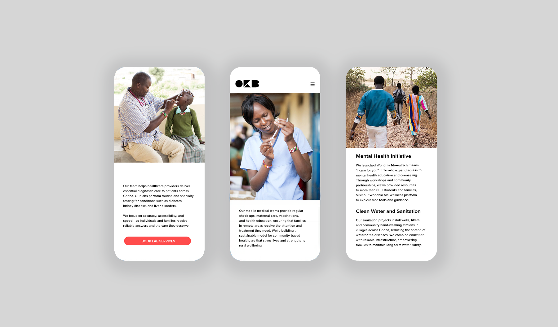 An NGO working to expand healthcare access across rural Ghana, the organization needed an identity that reflects a focus on community, clarity, and trust. The visual system aims to feel warm and human while remaining organized enough to support medical communication across donors, volunteers, staff, and the people relying on its services.